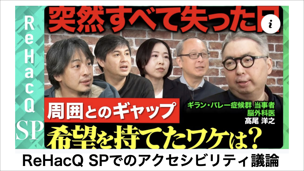 人気のYouTubeチャンネル・ReHacQ (リハック)でアクセシビリティが議論された回(前編・後編)のご案内です。